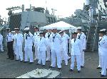 Les marins français étaient reçus en compagnie des autorités civiles et militaires et des présidents d’associations patriotiques, sur le bâtiment américain. Gerbes à la mer et sonnerie aux morts ont ponctué ce moment d’intense émotion.